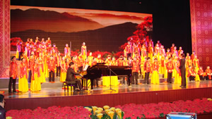 1月14日晚19:30,福建省教育系统2012年新春音乐会在福建大剧院举行。这场以“相约春天”为主题的全省艺术院校新春音乐会共分“点灯红”、“江南春”、“中国结”、“迎春曲”四个章节共11个节目。我校音乐学院为晚会带去了四个主打节目,师生们精彩的表演,备受全场观众的瞩目。本土原创优秀歌剧作品《土楼组曲》合唱,开场就喜庆亮相,博得观众热情洋溢的掌声;接着在各篇章的开篇,我校音乐学院邢维立、吕郭峰、王顺等老师的男高音三重唱《阿位木汗》、《乌苏里船歌》及陈国东老师的《敢问路在何方》荣登晚会的经典曲目榜,高超的唱功及表演,博得观众的阵阵掌声;此外,部分同学还为《葬花吟》、《好汉歌》等经典曲目合作了伴唱及表演;最后,我校音乐学院师生还与兄弟院校联合倾情演唱了晚会的压轴曲目《春节序曲》。省委常委、副省长、省教育工委书记陈桦,我省的老同志宋峻、王耀华、陈家骅等莅临现场与在榕师生代表1200多人一起欣赏了这场具有浓郁民族特色和地域风情的音乐盛宴。